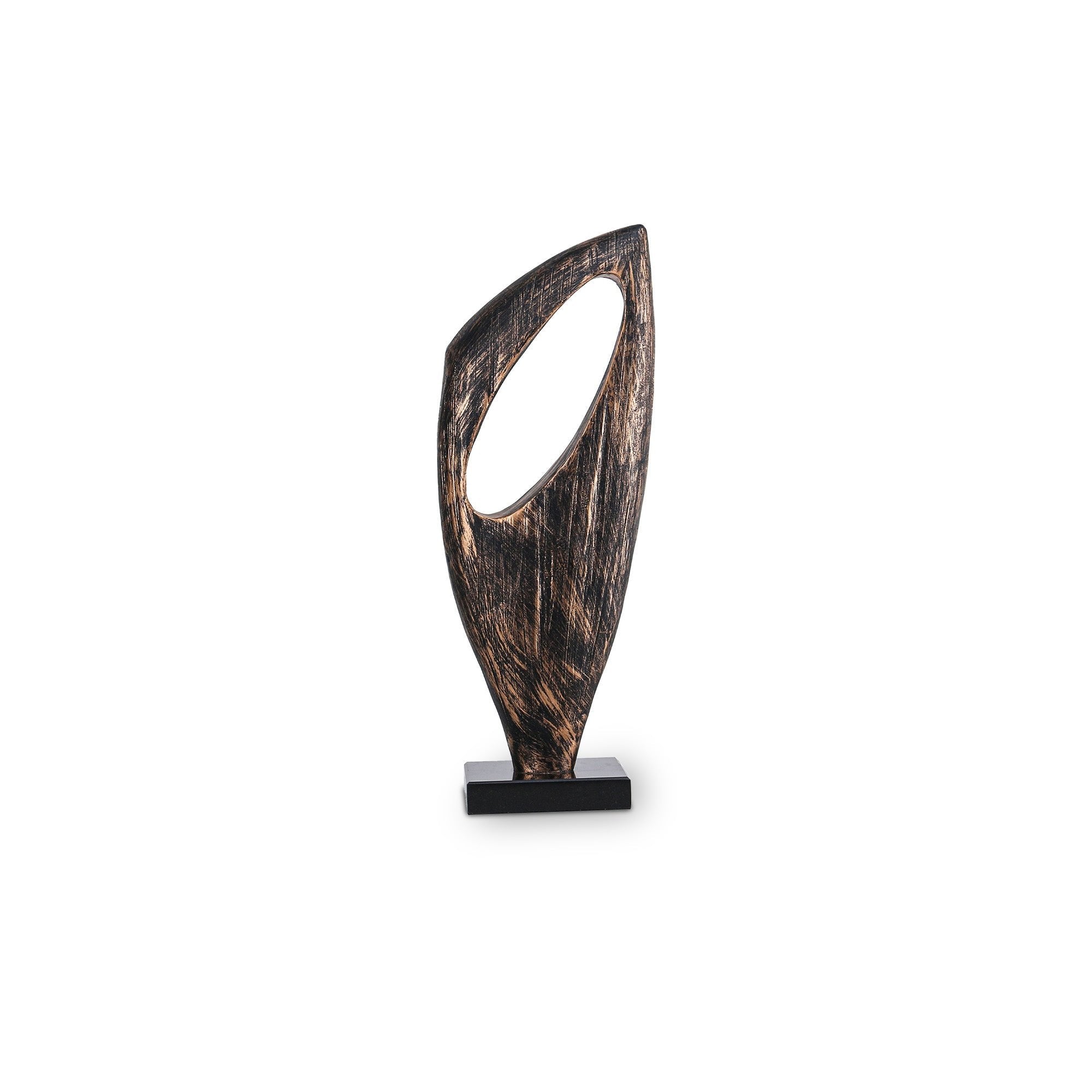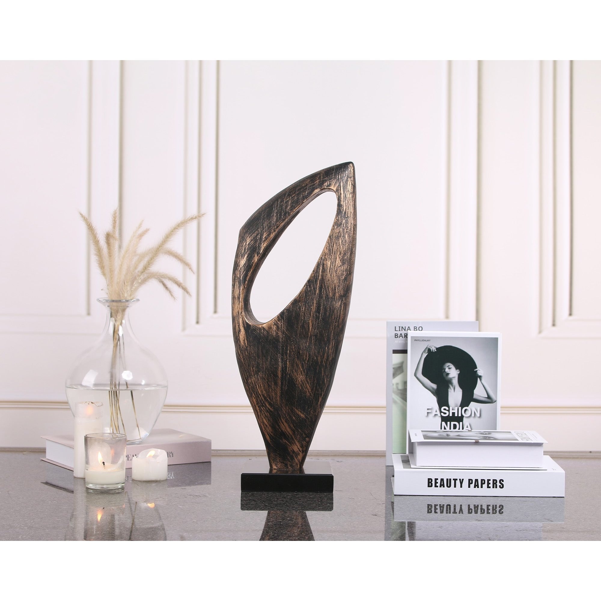 This striking sculpture blends antique bronze and black marble, featuring geometric abstraction with a captivating cut-out design atop a sleek marble base. Perfect for living rooms or studies, its intricate craftsmanship adds depth, character, and a touch of artistry to any interior.