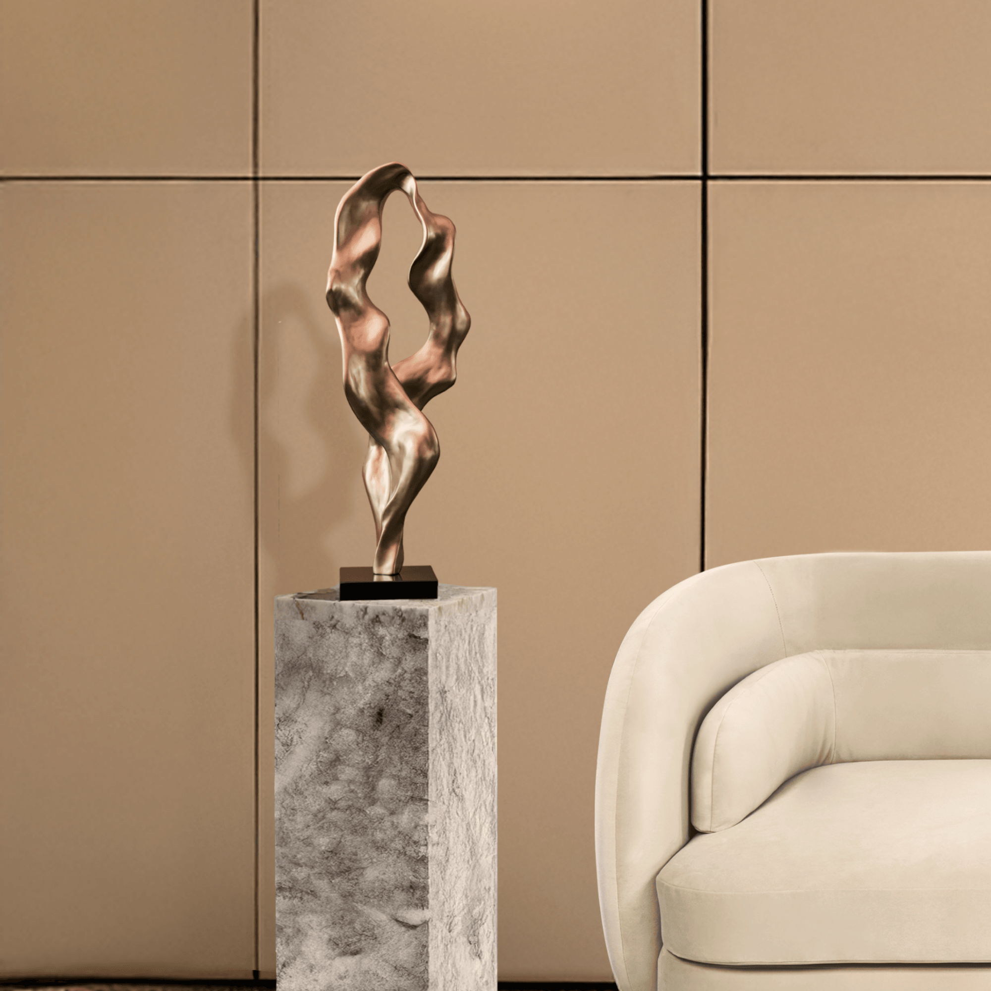 Introducing Petra, a breathtaking cast bronze resin sculpture that draws inspiration from Baroque art. Hand-carved from marble and resin, its dynamic form and geometric design create visual intrigue. A captivating decorative piece, it is perfect for enhancing any space, whether in a bedroom, living room, or hotel lobby.