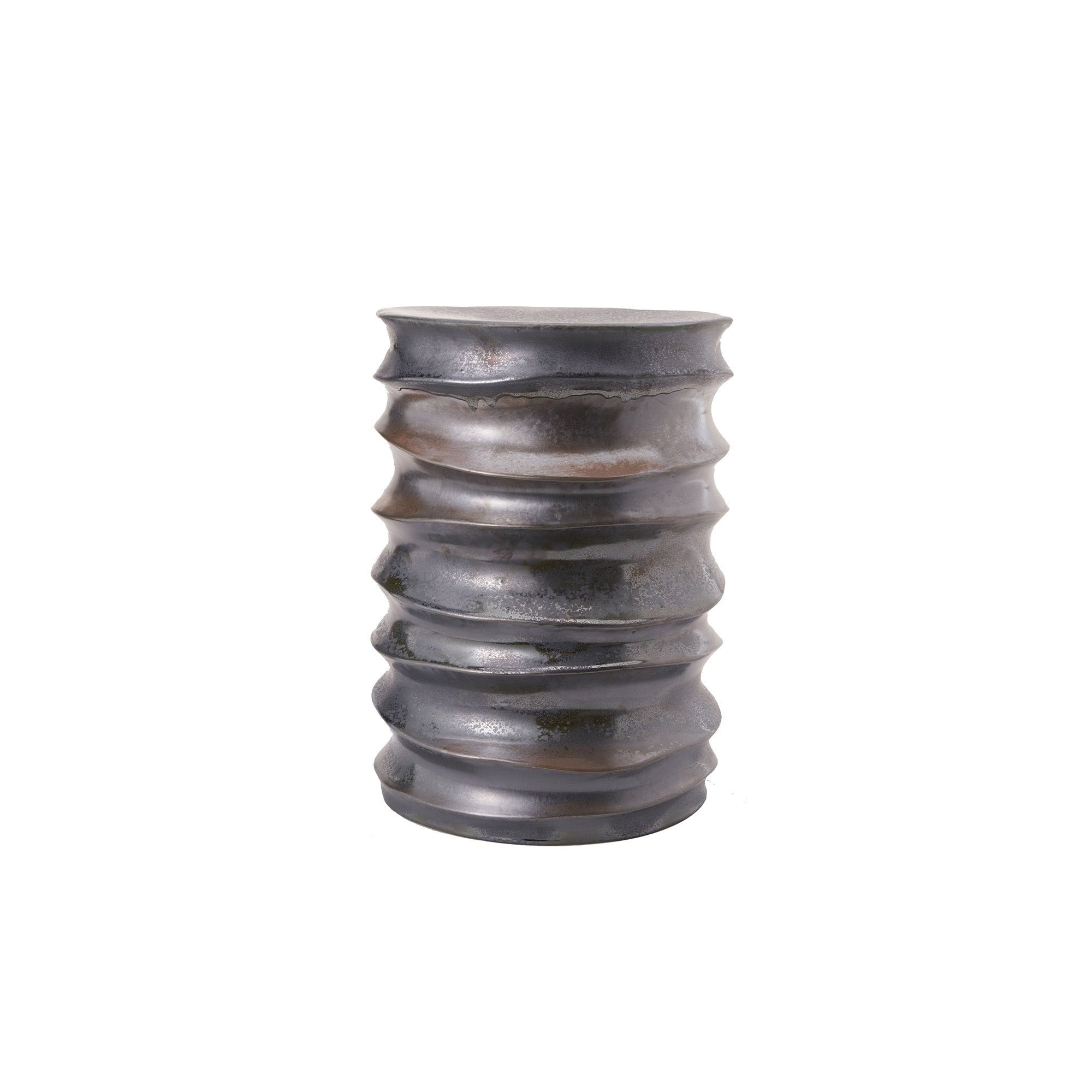 The Strata Stool commands attention with its grooved metallic charcoal finish‚ blending utility with industrial-inspired glamour.