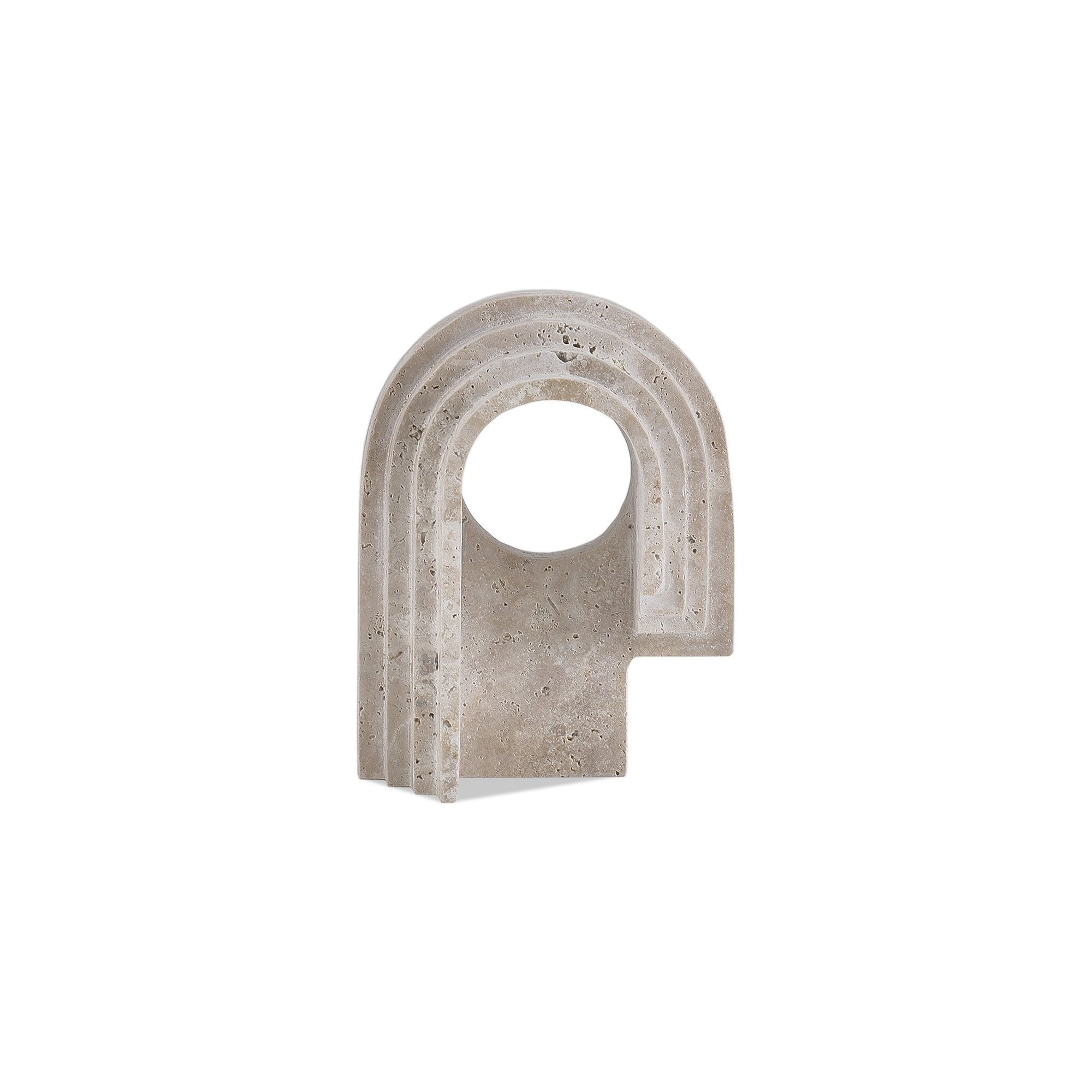 Immerse yourself in the captivating beauty of the Toccino Small Sculpture. Crafted from exquisite beige marble, it features intricate arch designs intertwined with the stone's natural veins, creating a stunning focal point suitable for any interior. Perfect for decorating living rooms, dining areas, or studies, this sculpture adds a touch of art deco charm with its understated elegance.