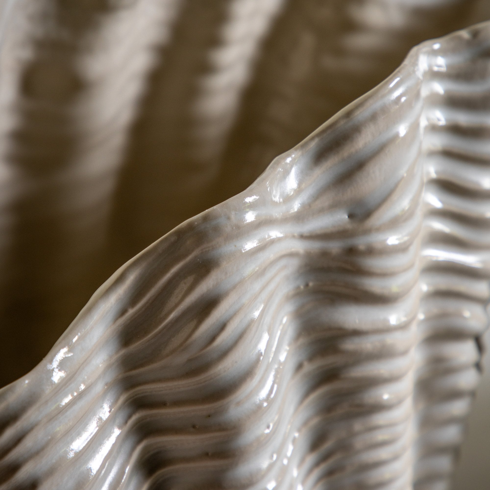 Bring the seaside to your room with this beautiful shell shaped vase. In a white reactive glaze and fluted seashell details, this is the perfect way to display your flowers. Smaller version also available.
