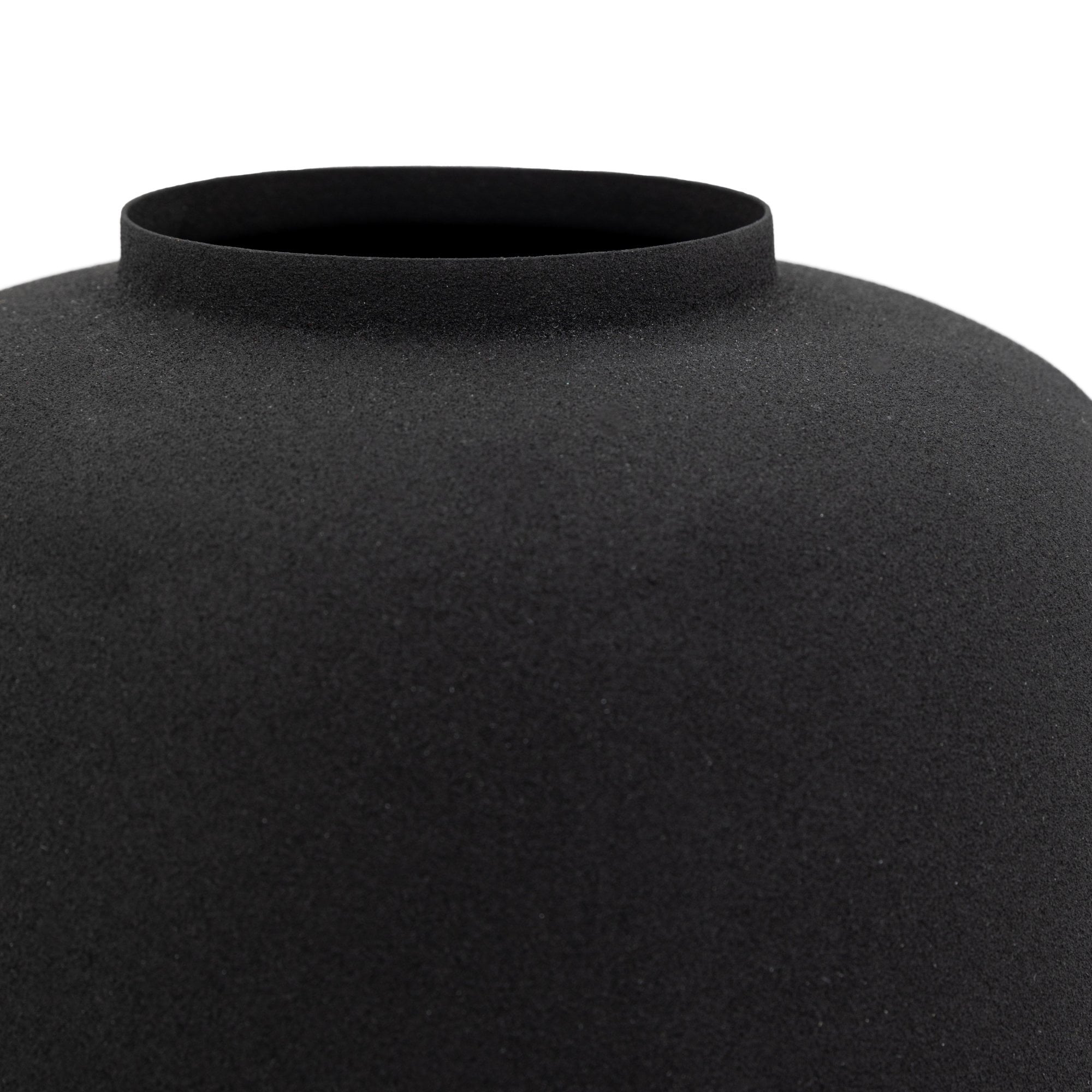 Minimalist spun metal vases finished in a matt black textured coating, this set of 2 vases would work beautifully either alone or when styled with dried or faux floral.