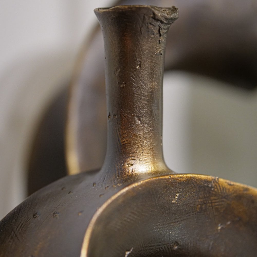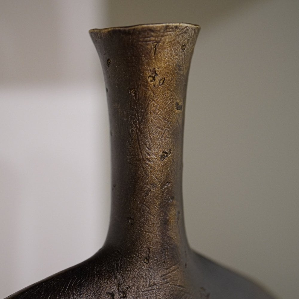 Mindy Brownes Interiors Large Abstract Vase A beautiful dark toned abstract vase, with naturally occurring indentations and blonde sculptural highlights, which will add a contemporary style to your home. Ideal for modern shelf or console styling in pairs with it's matching Small Abstract Vase (SDA038) or individually.
