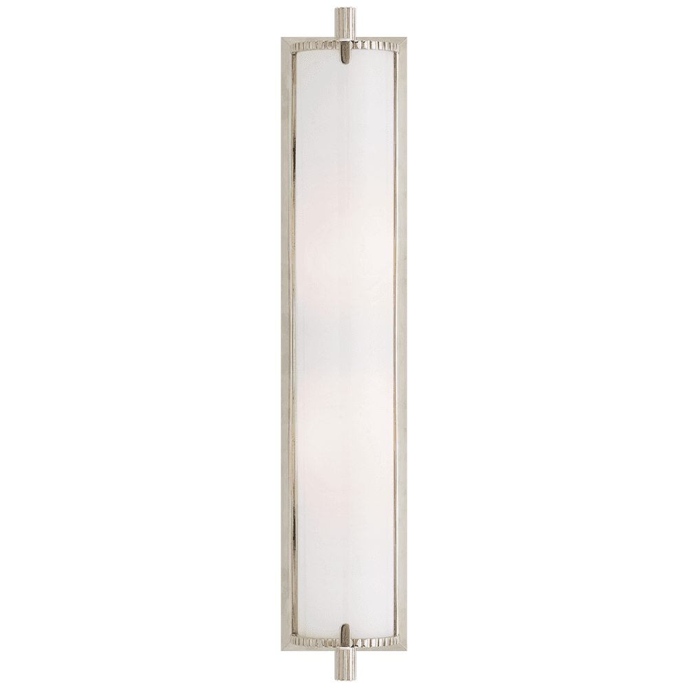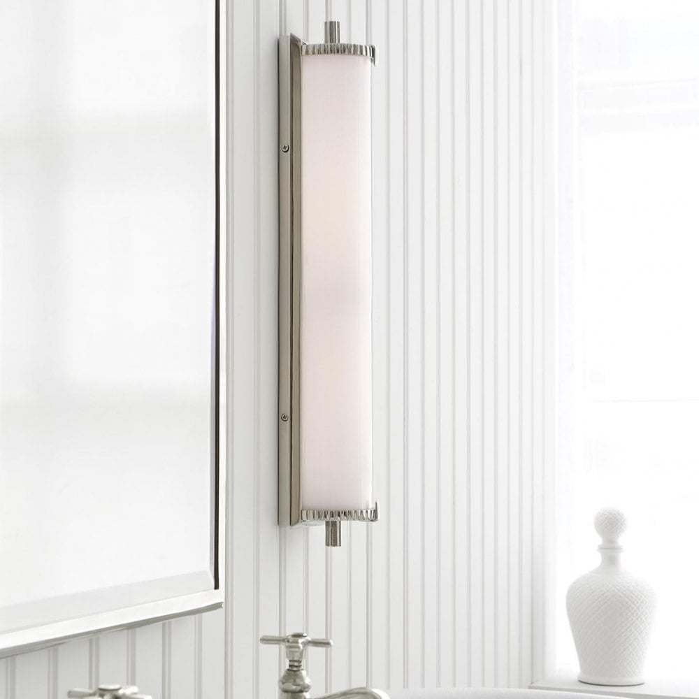 Calliope Polished Nickel Tall Bath Wall Light with White Glass Shade