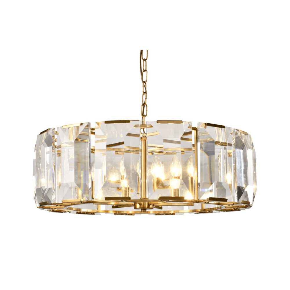Send light dazzling through the room with this spectacular rectangular crystal chandelier. This stunning chandelier is brimming with modern glamour and ideal for adding a bold dash of drama to any room. A luxurious pairing of crystal and brass. Part of our Eton Collection.