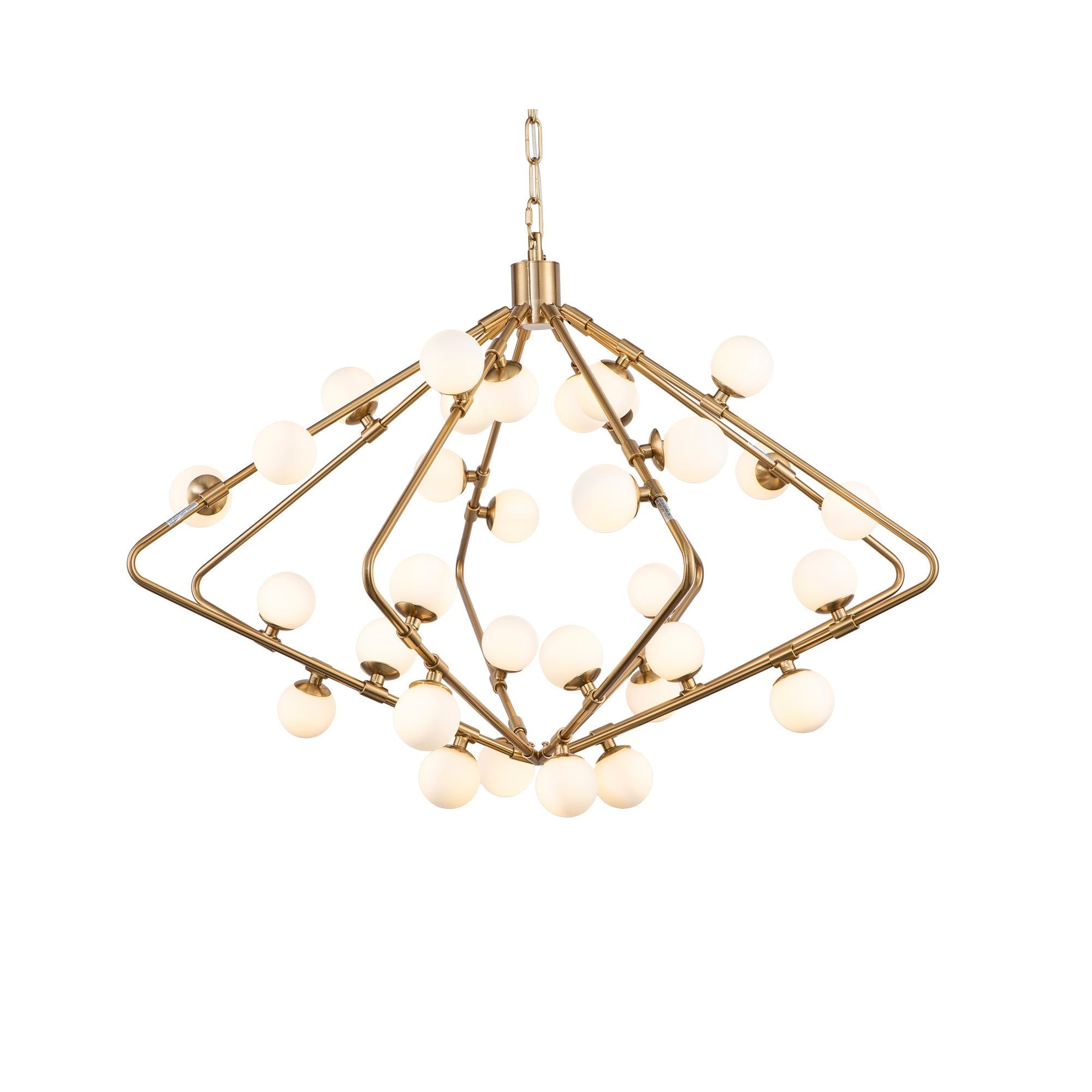 Illuminate your space with the Gama Pendant Lamp, a stunning depiction of sheer elegance and sophistication. Crafted in antique brass, this lamp features a radiant white glass shade that captures the essence of Mid-Century Modern design. Perfect for enhancing social settings and sublime spaces, the Gama Pendant Lamp creates a pleasant ambiance that elevates any decor.