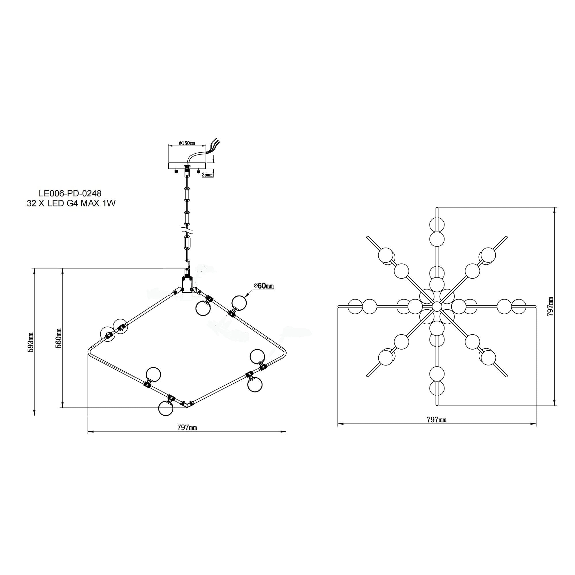 Note: light bulbs sold separately; requires 32 x LED G4 MAX 1W for full functionality.
