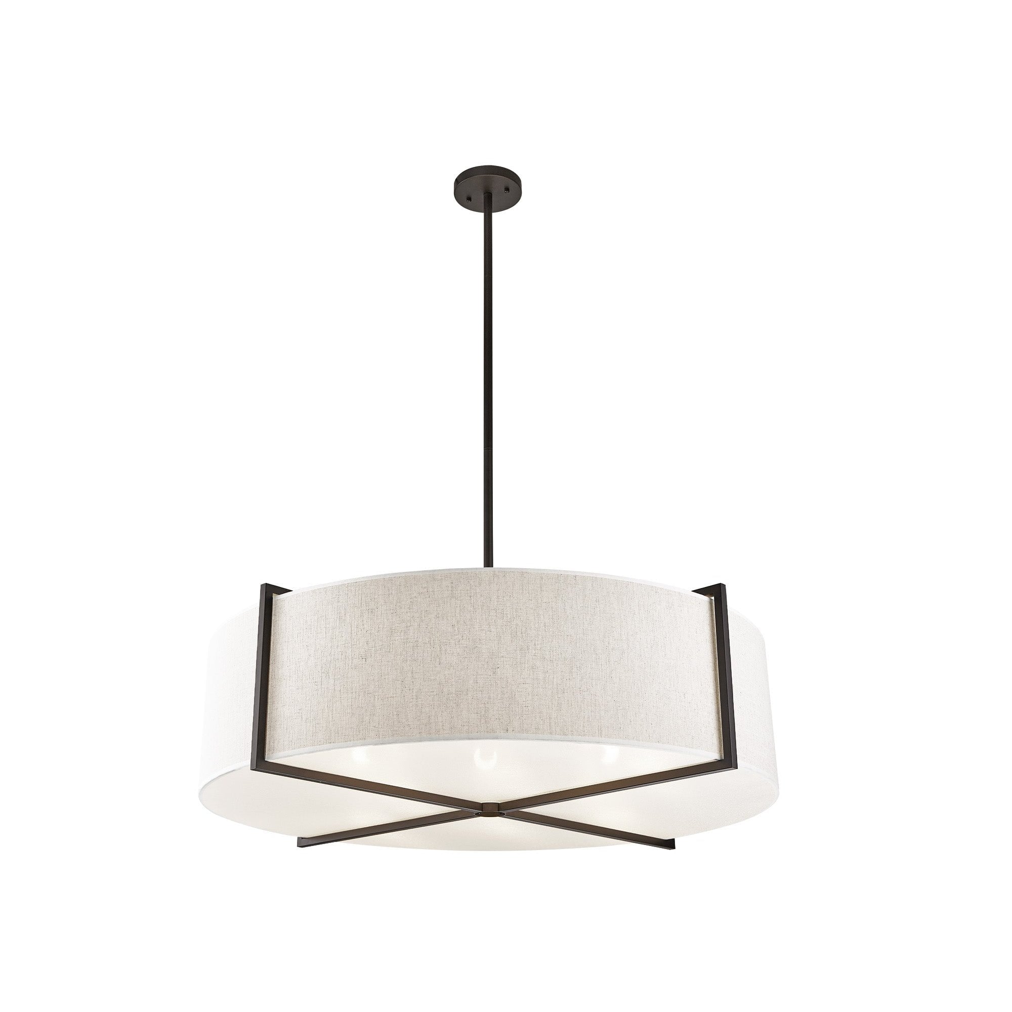 Sanderson Pendant Ceiling Light Beige Linen Shade & Matt Black Frame
