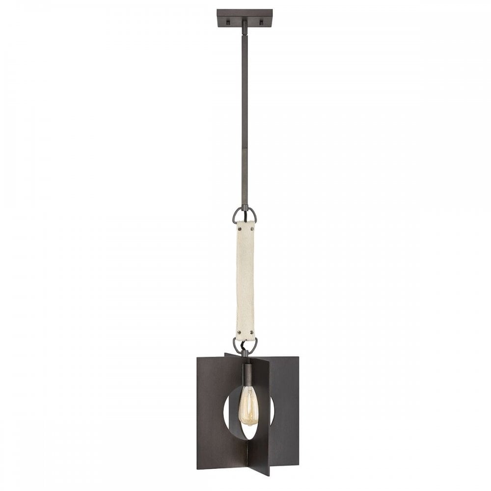 Ludlow cleverly blends a penchant for industrial features with inspiration drawn from Palladian architecture. Designed around the light source, Ludlow plays with the simple geometry of circles and squares for an extra-stylish composition. The single pendant incorporates rustic natural elements with the use of a genuine cow-hide strap. Finished in Brushed Graphite.
