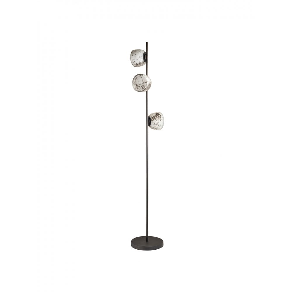 Three bowl shaped glasses are positioned around the bronze stem of our new Orla floor lamp. Each speckled glass surface highlights the intricacies of glass making - individually forged in the heat of the molten glass, metallic grains react across the surface, providing infinite variations of markings on each piece.