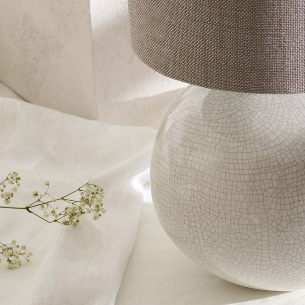 A petite rounded base with a subtle crackle glaze finish, our Camellia table lamp captures the beauty of the finer details found in nature, reflecting the delicate veins running through petals and leaves.