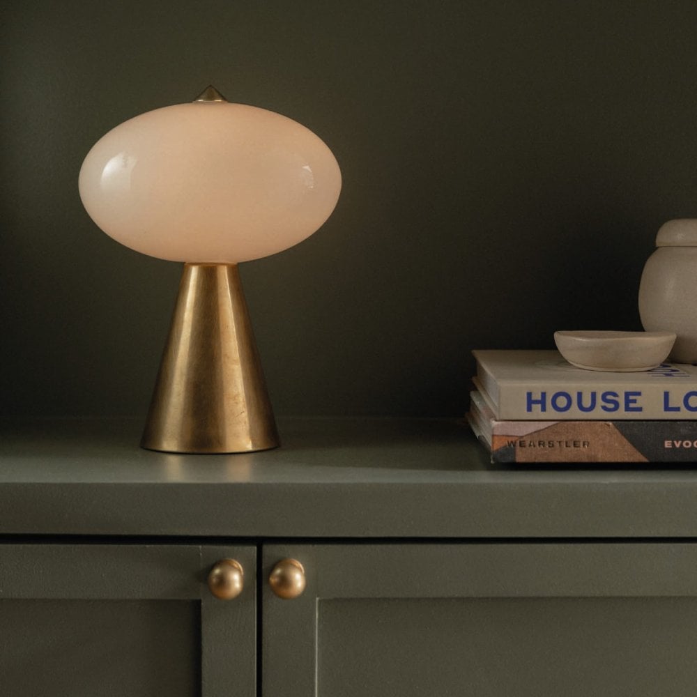 Minimalist yet striking, the Nyx portable lamp, created in collaboration with Pollyanna Wilkinson, is a versatile addition to both indoor and outdoor spaces. Its tapered Waxed Brass base supports an oval-shaped Opal white glass shade, casting a soft, ambient glow. A concealed 3-touch brightness switch within the brass finial ensures effortless functionality, blending refined design with everyday usability. IP44 rated for outdoor use.