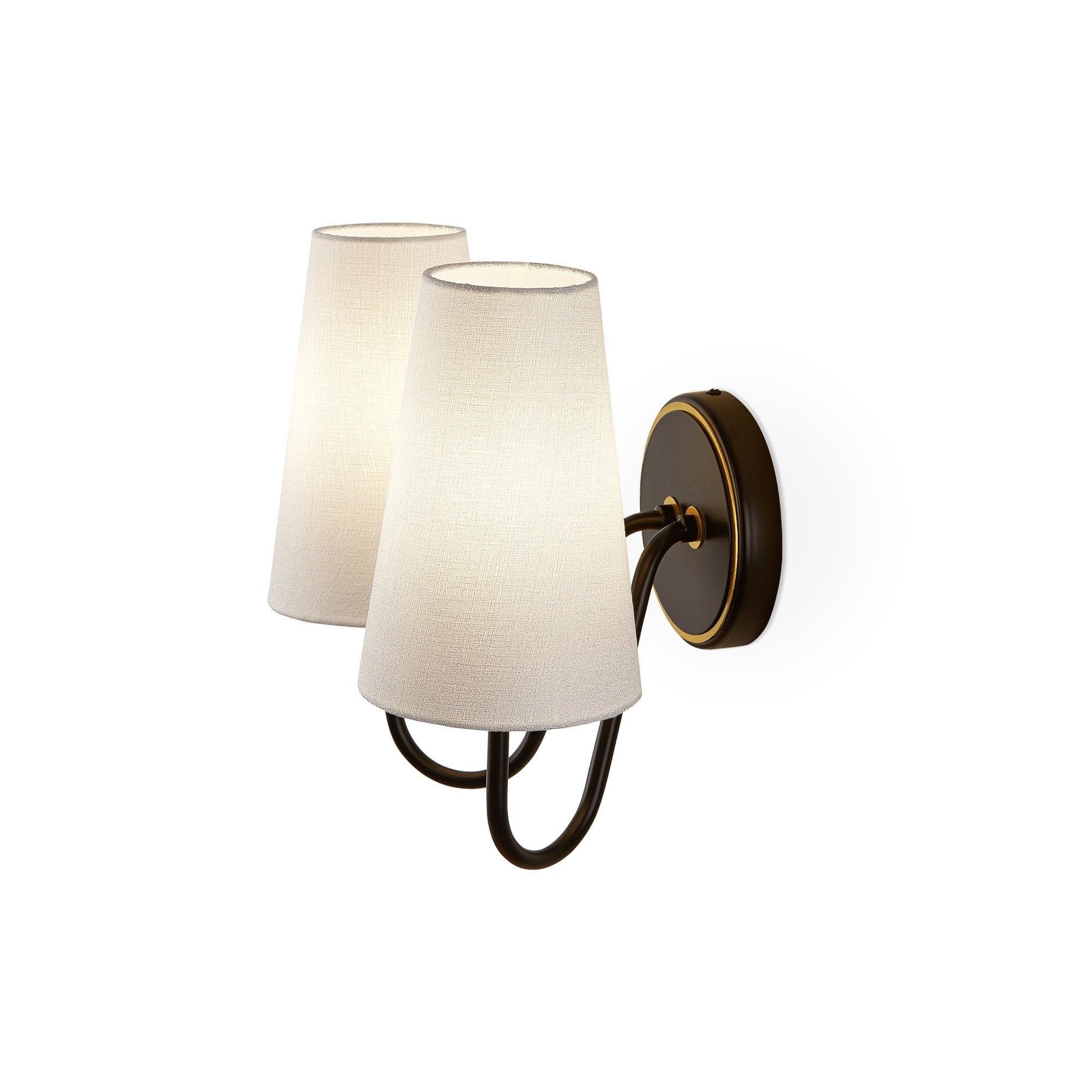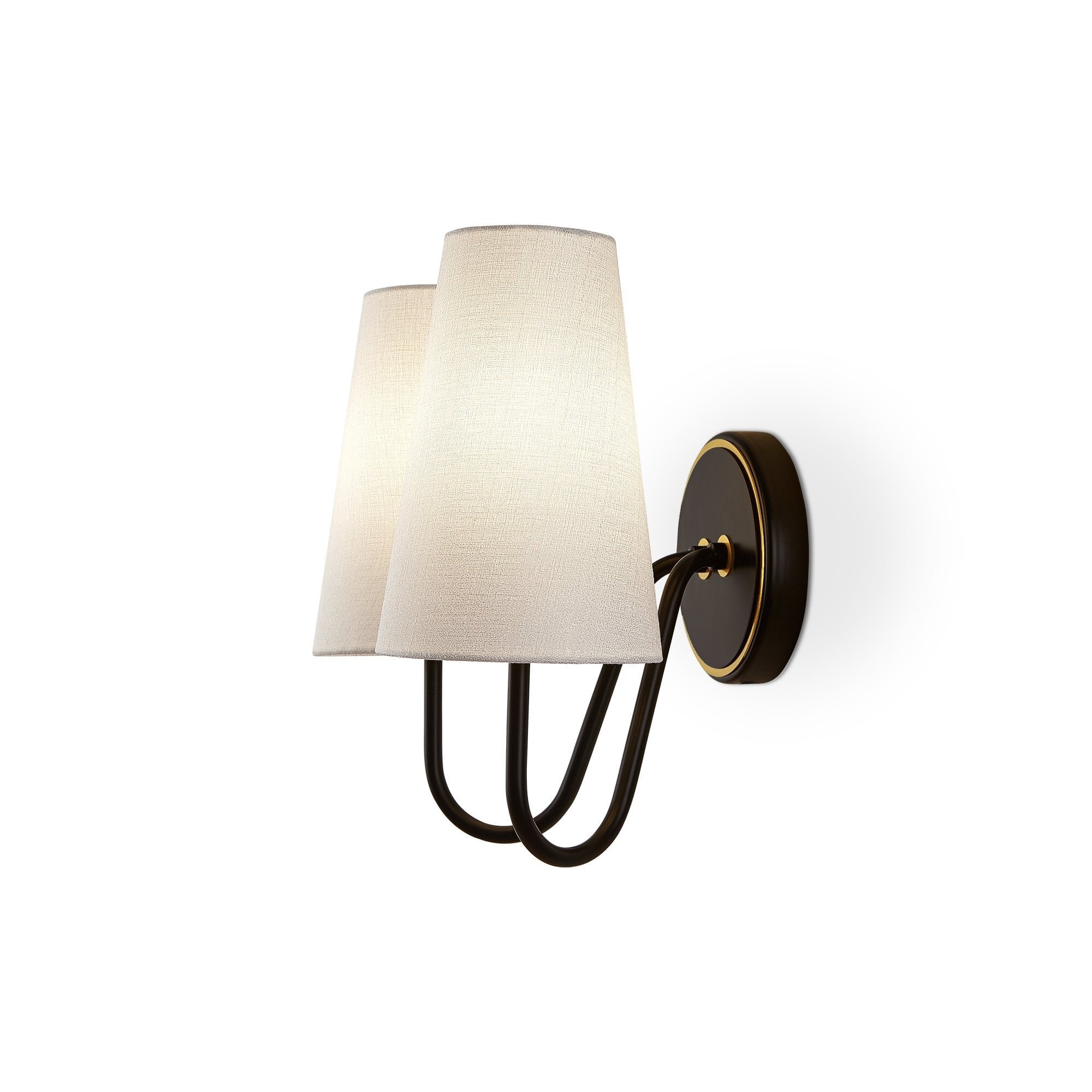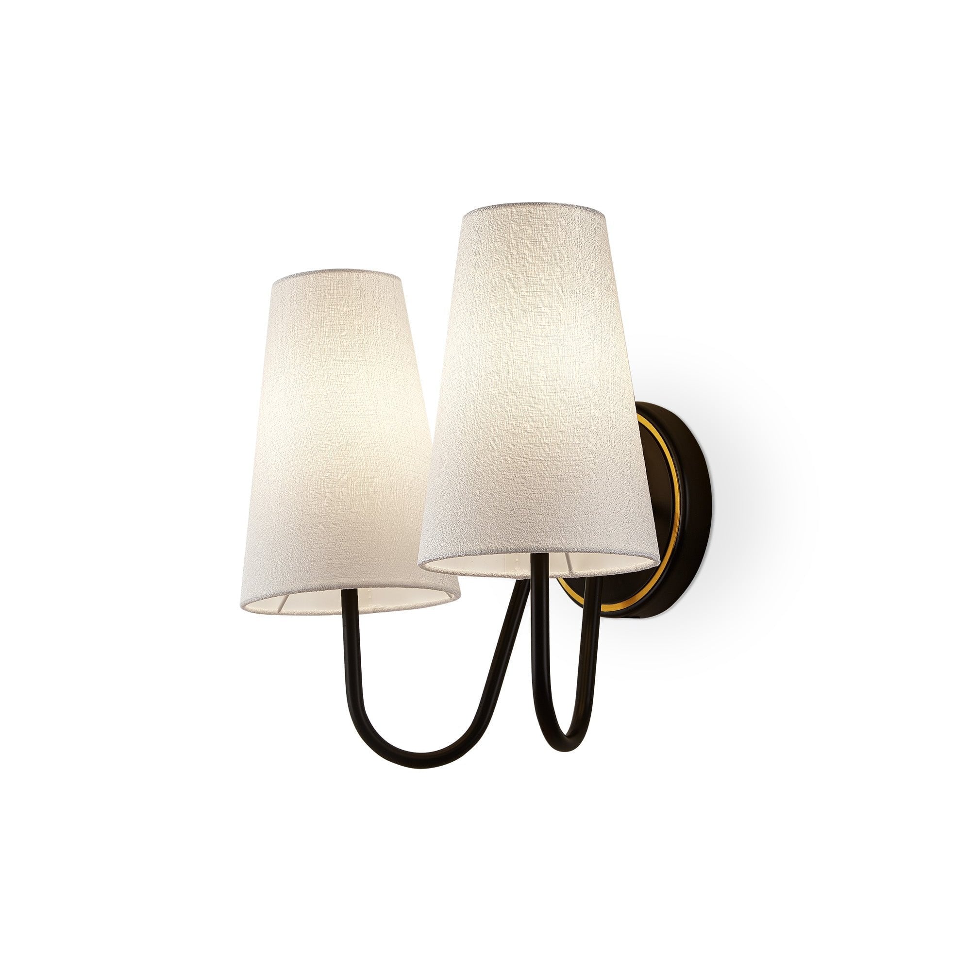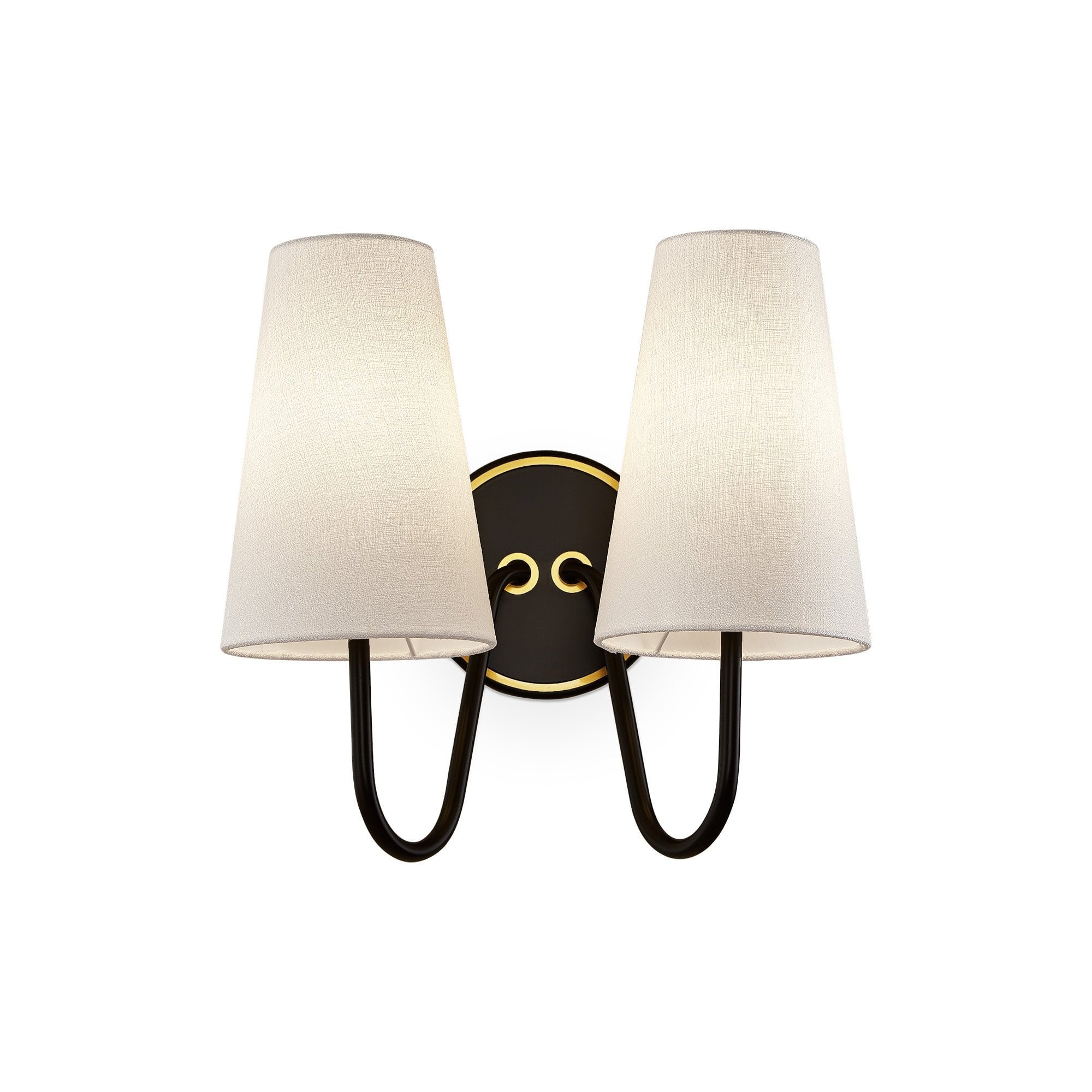 Gildan Wall Light Black & Brass Frame & White Linen Shades