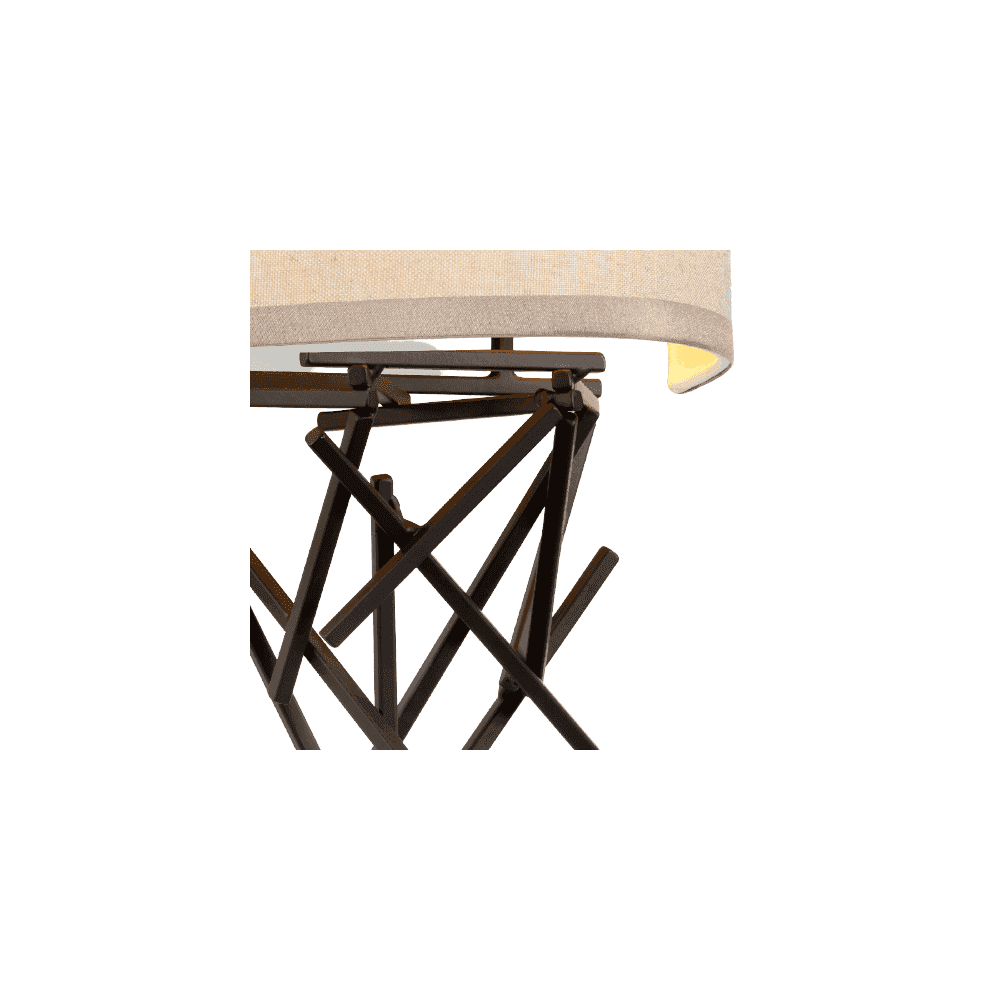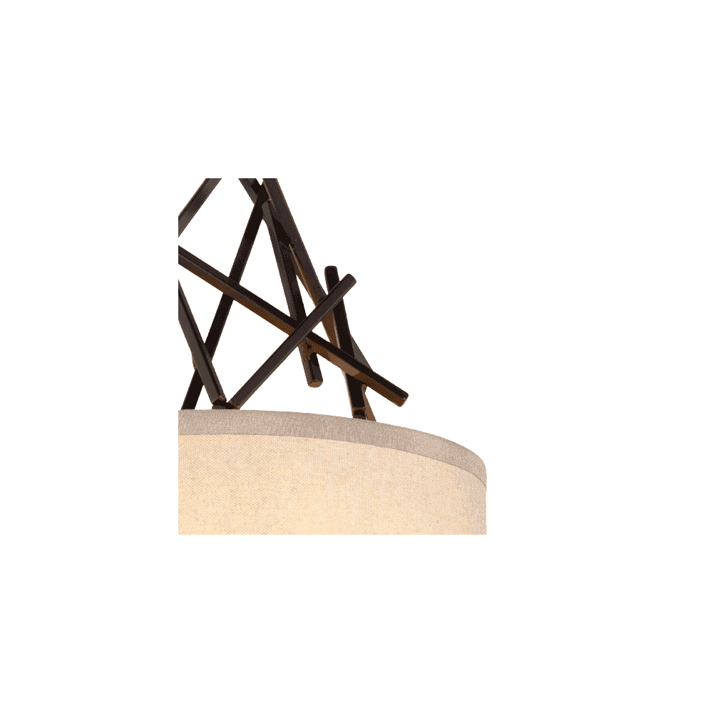 The standout detail of the UK made Taiko is its unique metal diffuser. This handsome visual motif, an artistically arranged gathering of intricate elements, creates a visual excitement and energy, cleverly balanced by a crisp oatmeal linen shade.