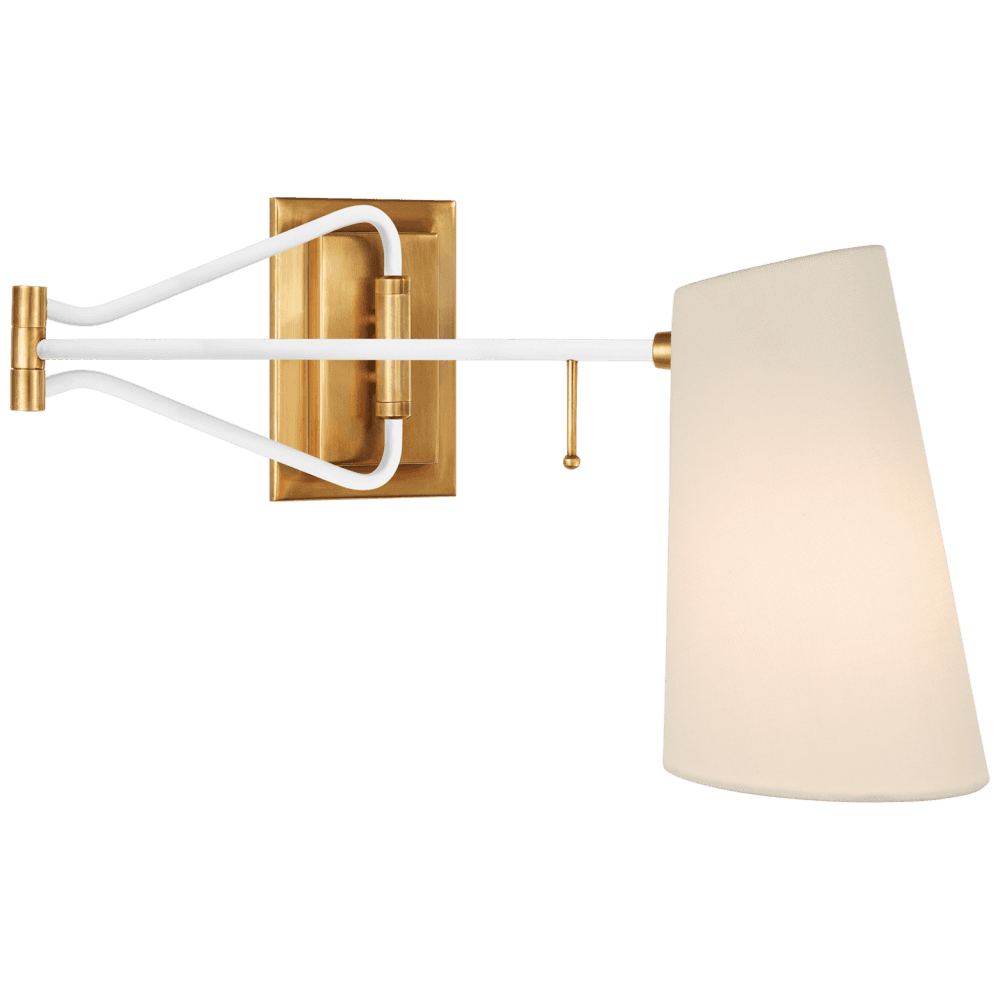 Keil Antique Brass Swing Arm Wall Light with Linen Shade