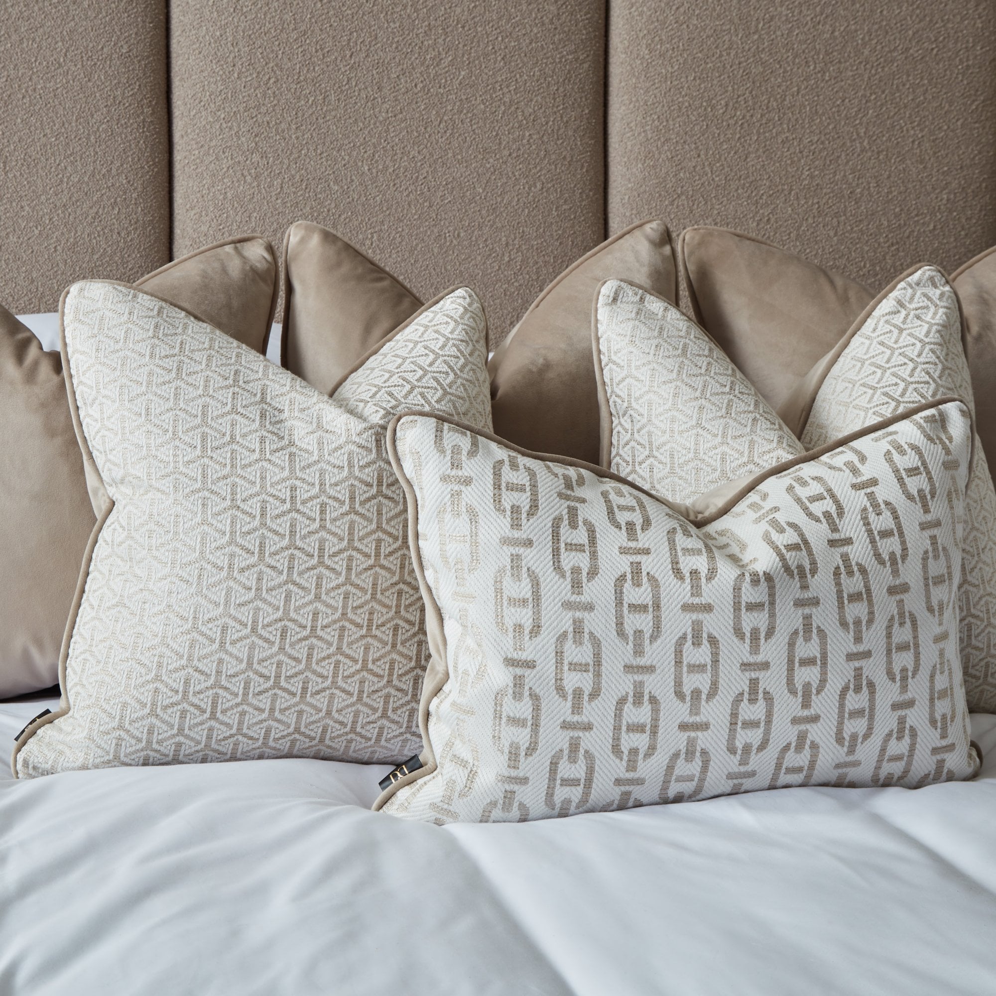 - 3 x 22” Putty Velvet Piped with Putty Velvet