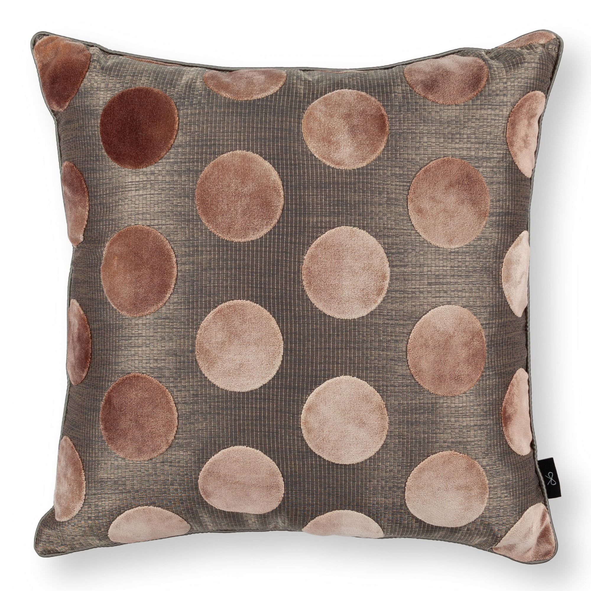 Large, velvet polka dots contrast against woven metallic yarns in a sumptuous play of light and shade, creating a striking velvet cushion.