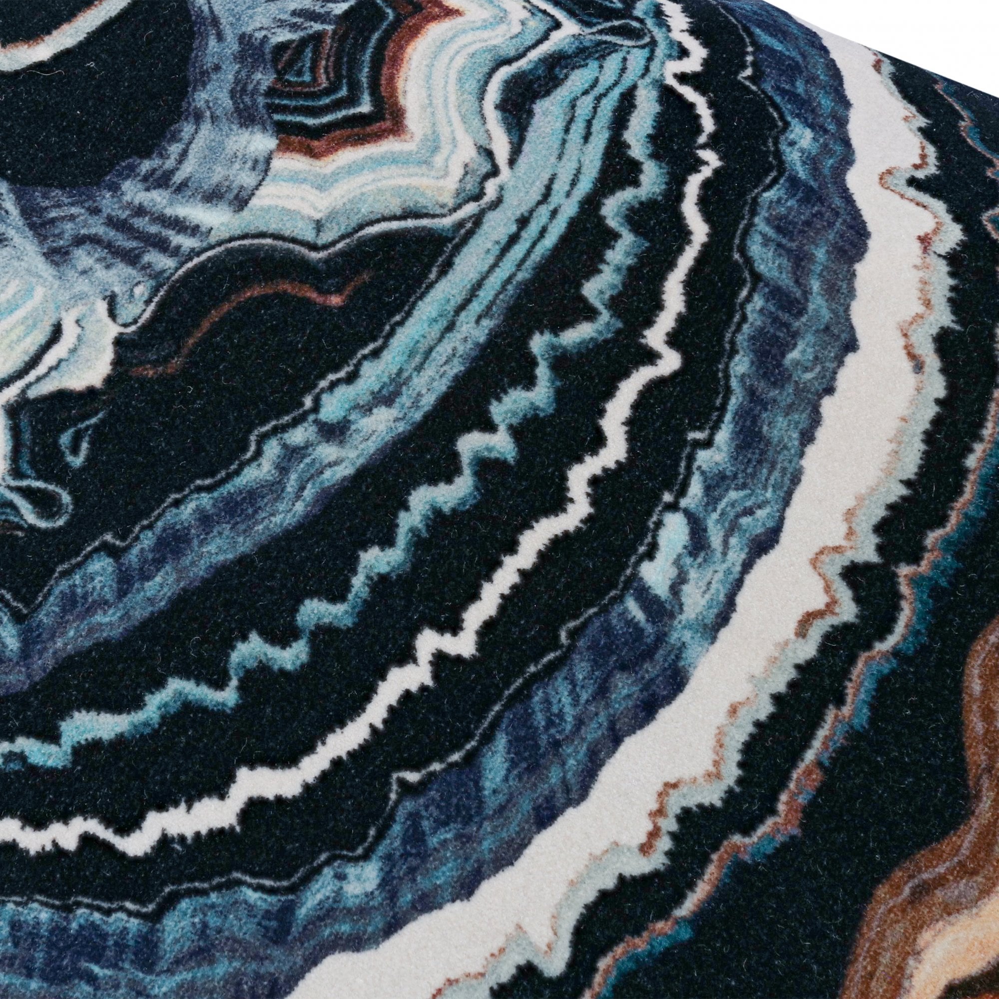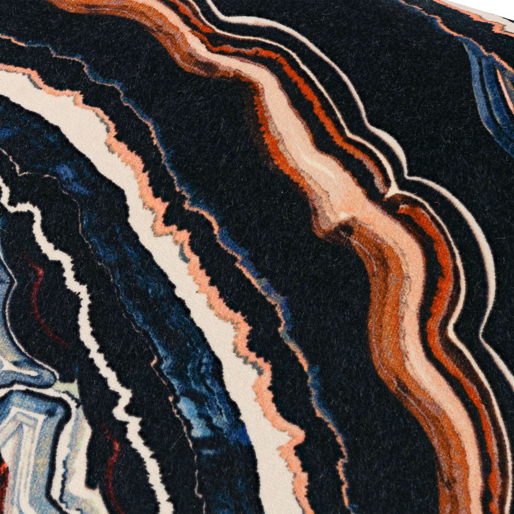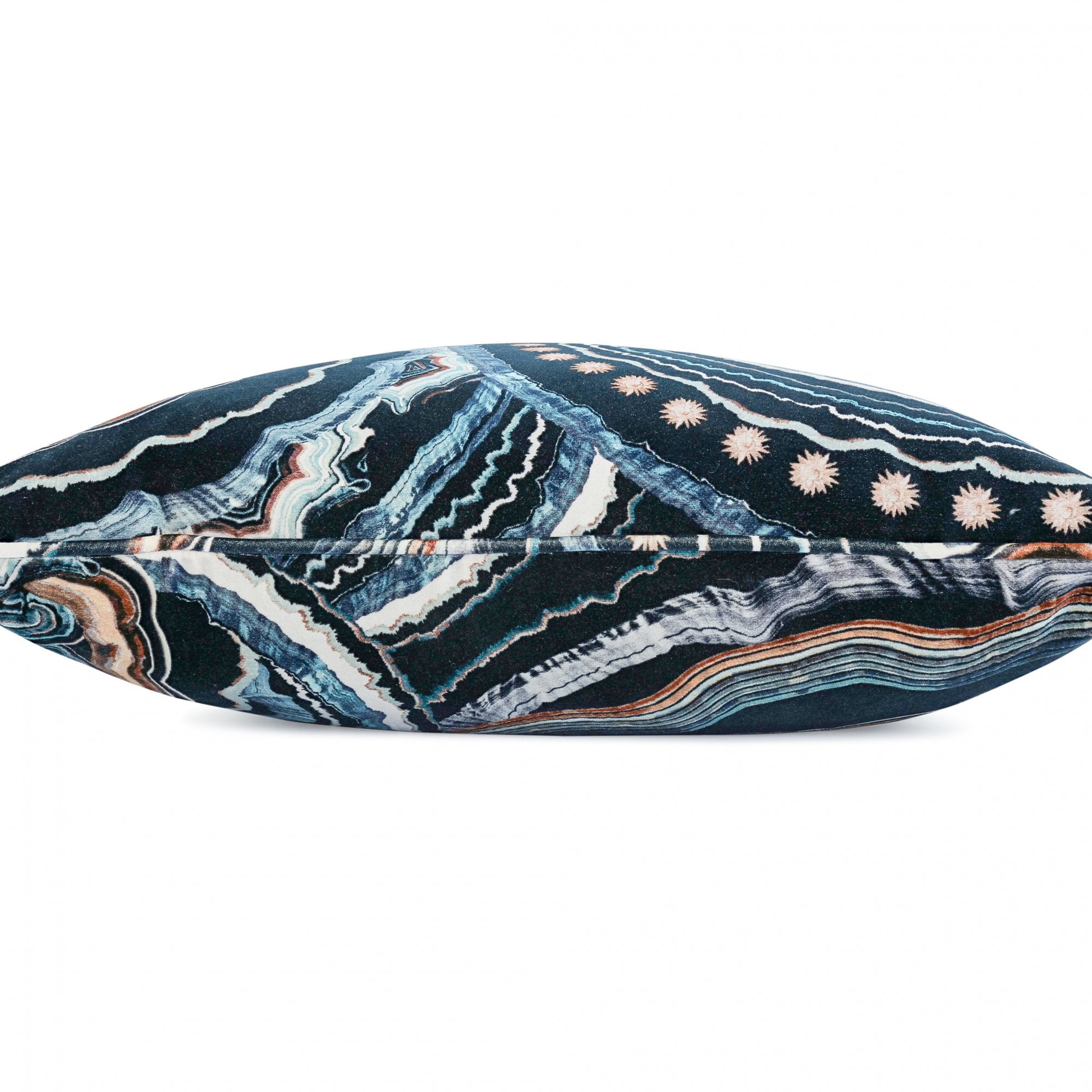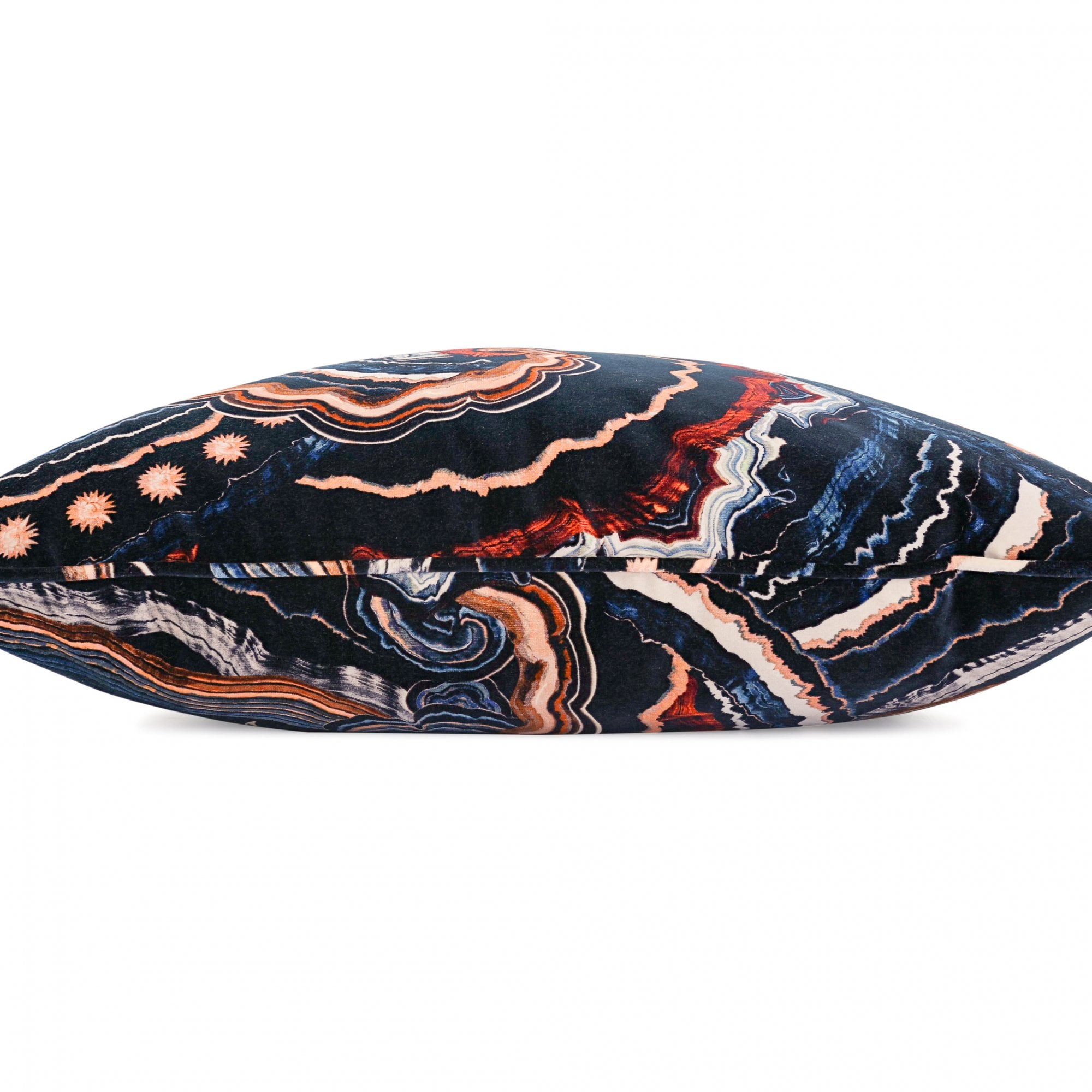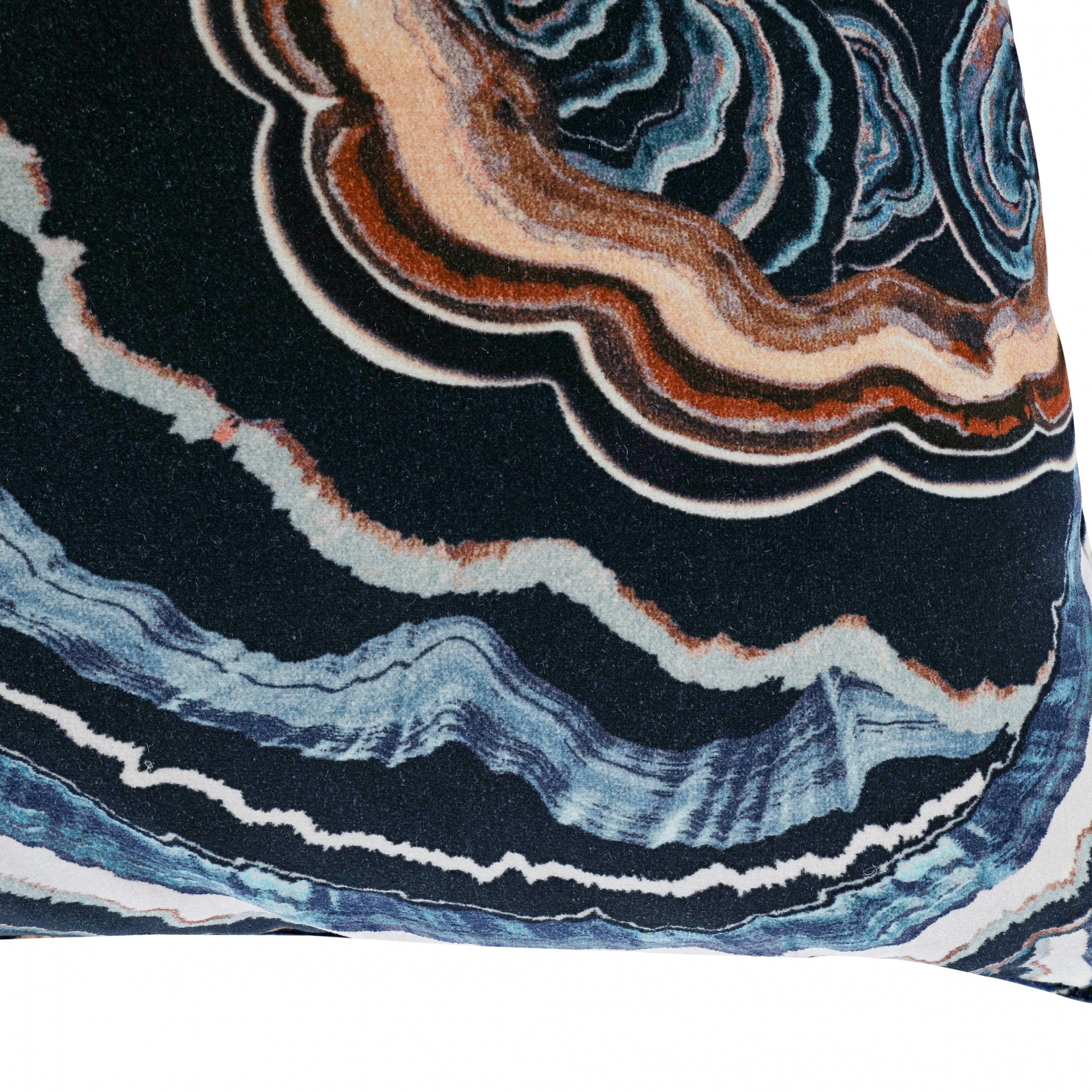 A sumptuous, deep pile velvet cushion featuring a hypnotic display of agate inspired swirls that exudes a psychedelic sophistication.