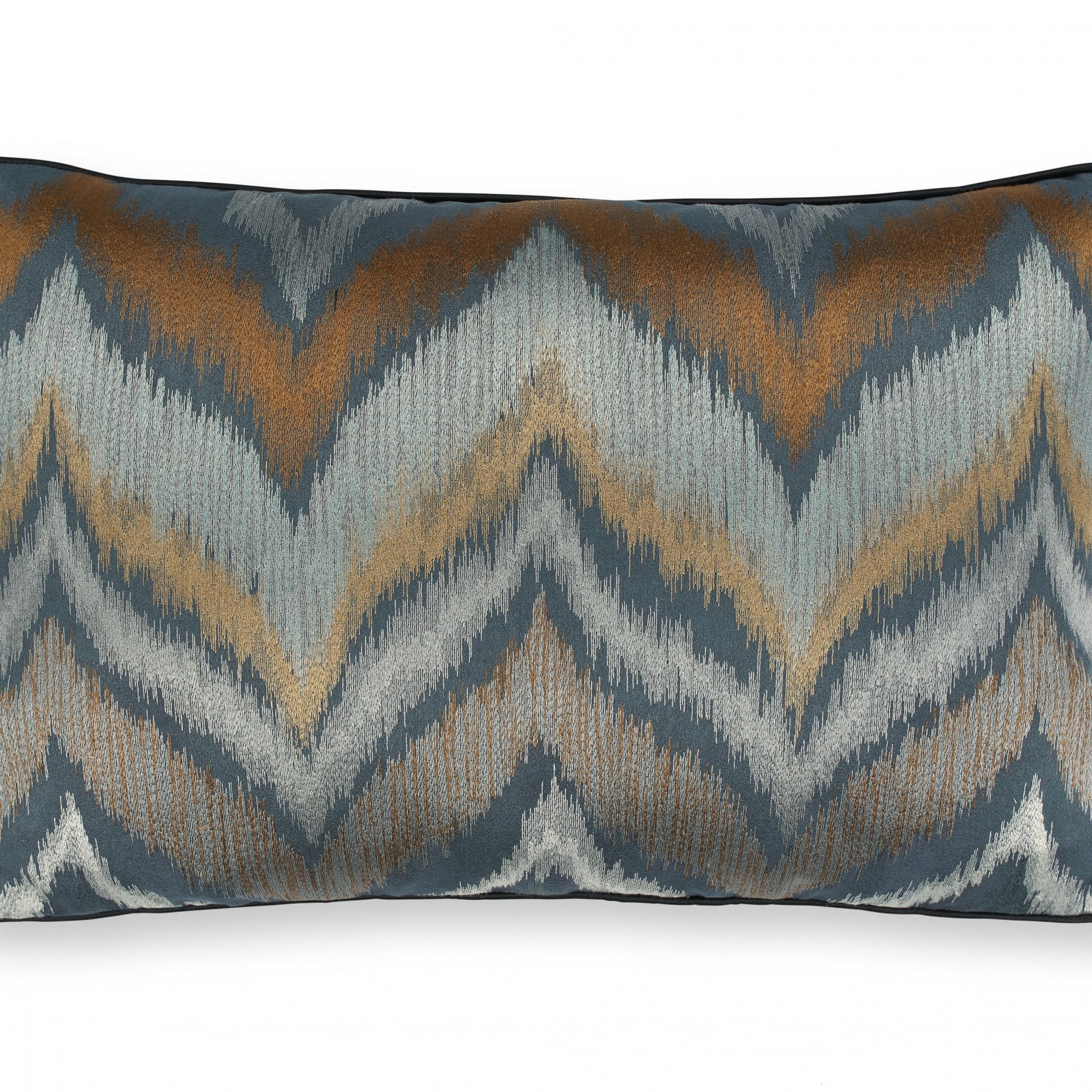 Graphic and luxurious, the Hazuri cushion features a striking, embroidered chevron design.